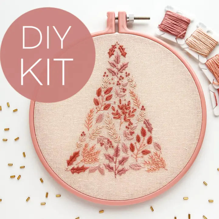 7” Floral Pink Christmas Tree embroidery kit is a festive DIY craft to enjoy this holiday season! This pattern features a delightful pink color palette and a variety of stitches. This kit is designed for confident beginners familiar with embroidery basics. The pattern is already stamped on fabric with heat erasable ink. This means you can start stitching right away! Pattern outline can be easily removed with hot steam or heat when finished.