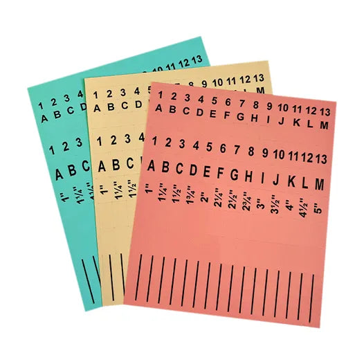 GEasy Organizing Stickers includes three colorful sheets that feature stickers with 2 sizes of printed letters A-M and numbers 1-13, blank customizable stickers and common cutting measurements to adhere to clips. These handy stickers are perfect for keeping your projects organized.